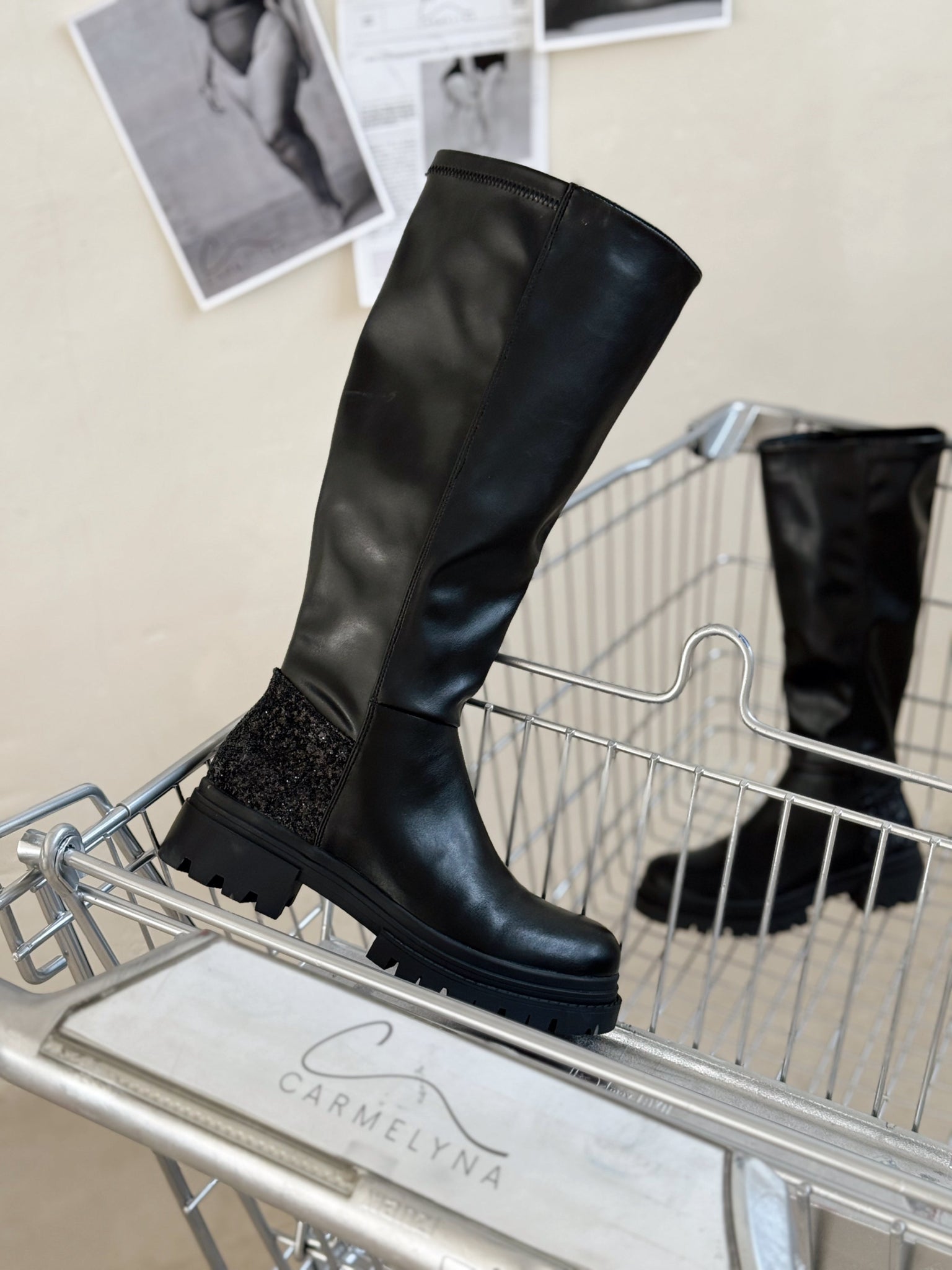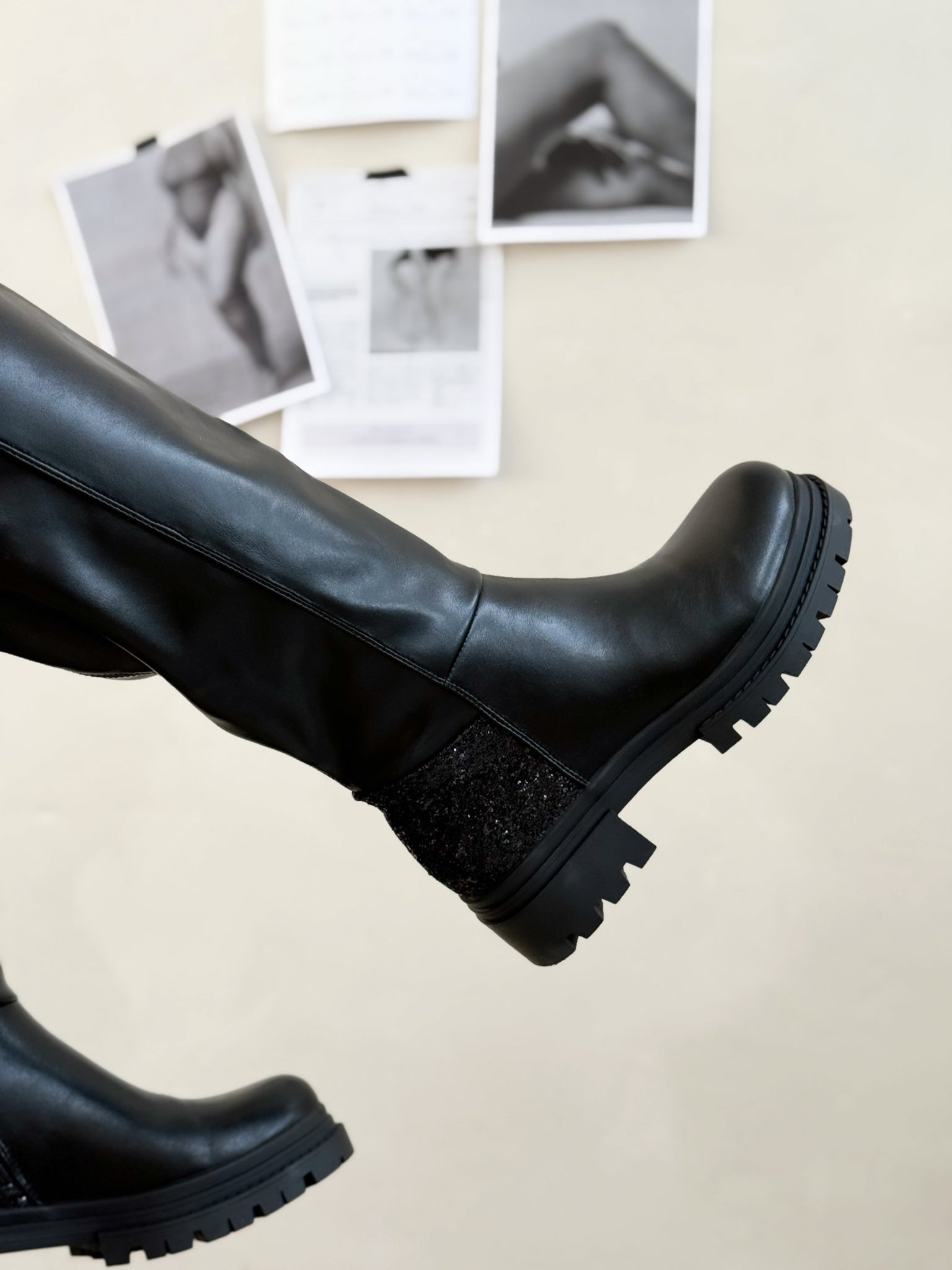 Les bottes Cinzia apportent une touche audacieuse à vos looks d’hiver. Leur ligne épurée s’habille d’un détail scintillant au talon, subtil mais terriblement chic. Avec leur semelle crantée et leur confort de marche, elles allient style affirmé et practicité au quotidien. Parfaites pour passer de la journée au soir sans changer de chaussures.